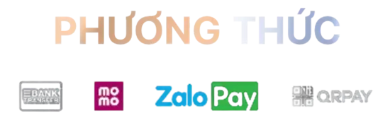 Ngân hàng nội địa, ví điện tử MoMo, ZaloPay, ViettelPay và QR Pay.